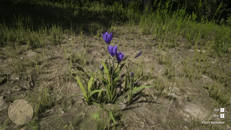 The Violet Snowdrops require a particular climate to grow, so they can but exist found in the coldest region of the game, which is the northern part of Ambarino. This herb cannot be found in the snowy areas, so search for their vivid violet blossoms in the areas near the ones covered in snow. The Violet Snowdrops tin be used to craft Strong Herbivore Bait.